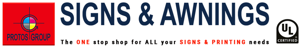 Protos Signs & Awnings.Specializing in manufacturing Channel Letters and Awnings.